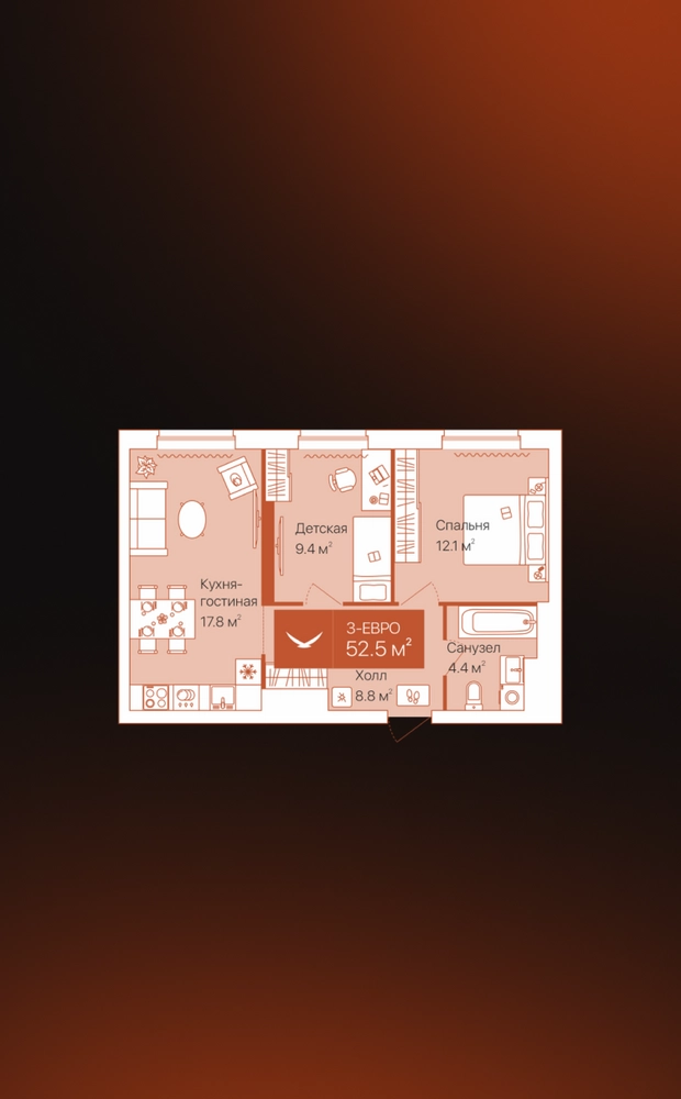 ЖК «Эклипт», ГП45.2-12, Секция 1, Этаж 4