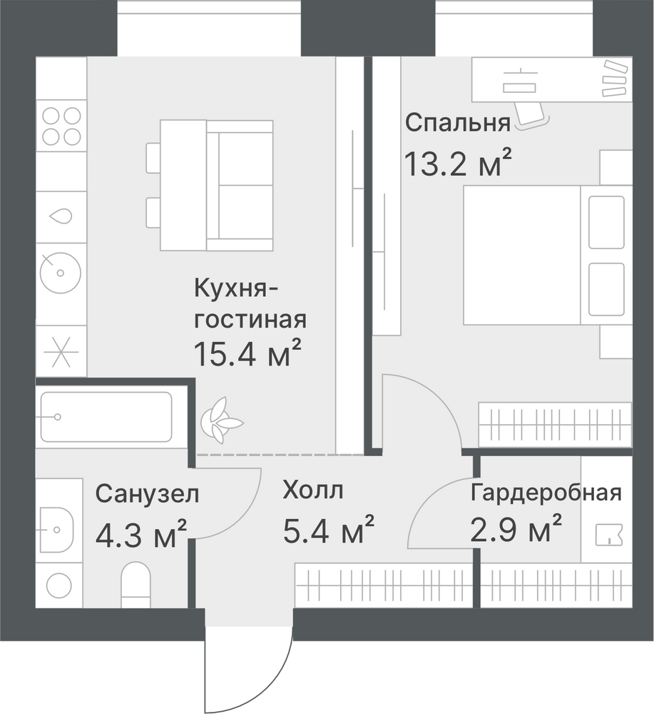 1-комнатная  38.2 м2
