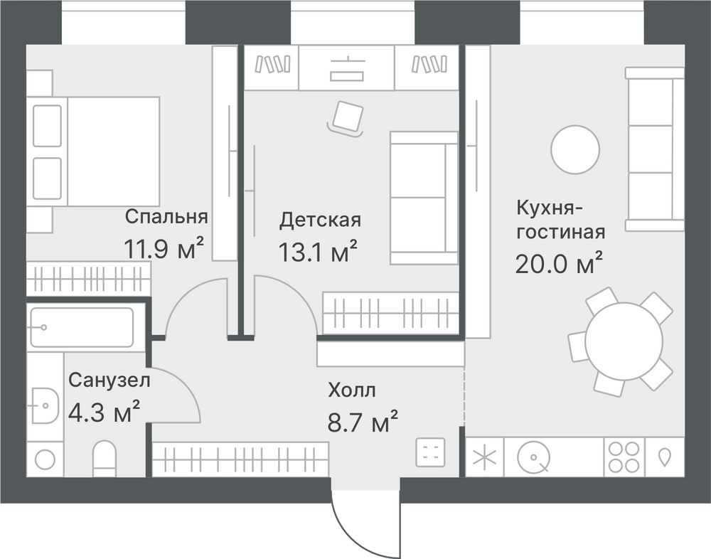 2-комнатная 52.2 м2
